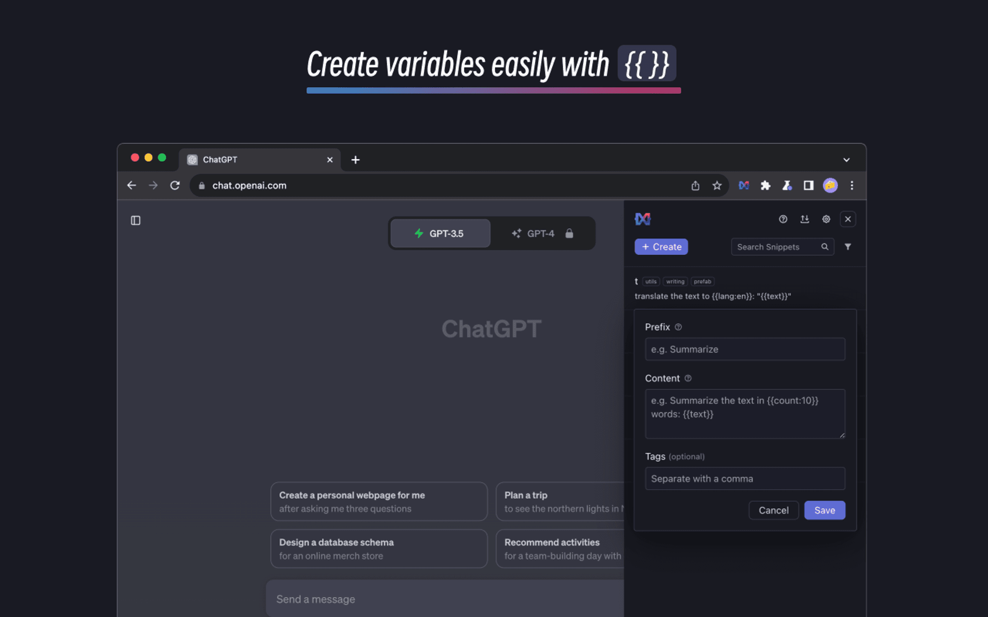 根据调研的结果,PromptSnippets立项之初我设立了这几个差异点: